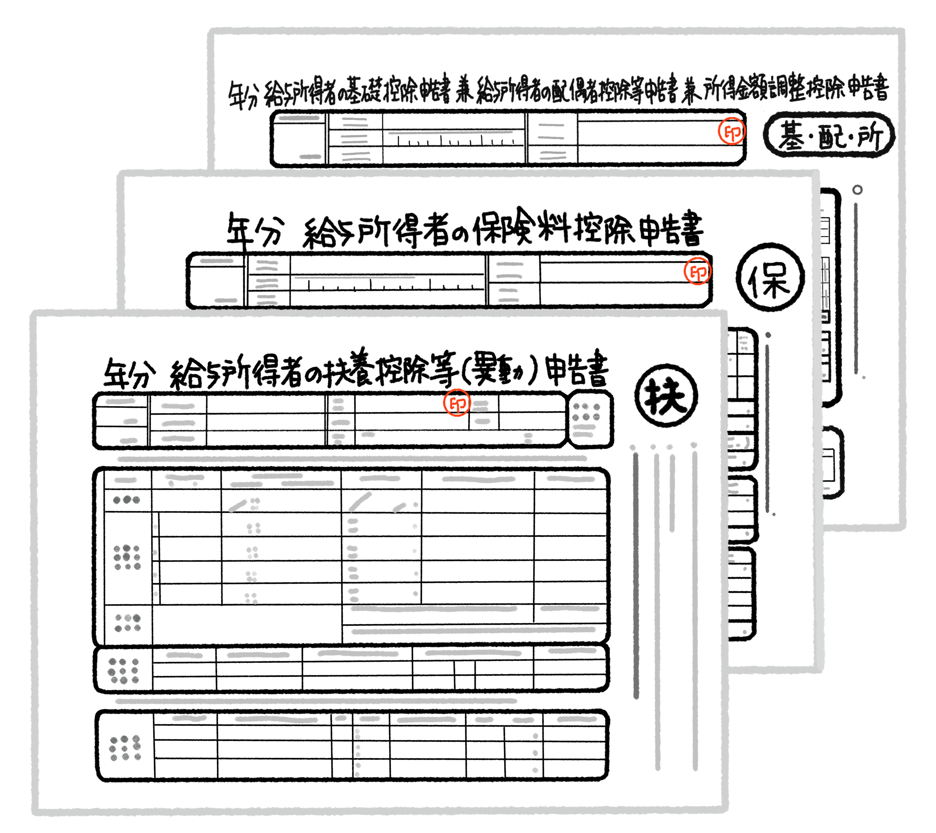 | ・所得税源泉徴収簿/給与所得者の配偶者控除等申告書/給与所得者の保険料控除申告書